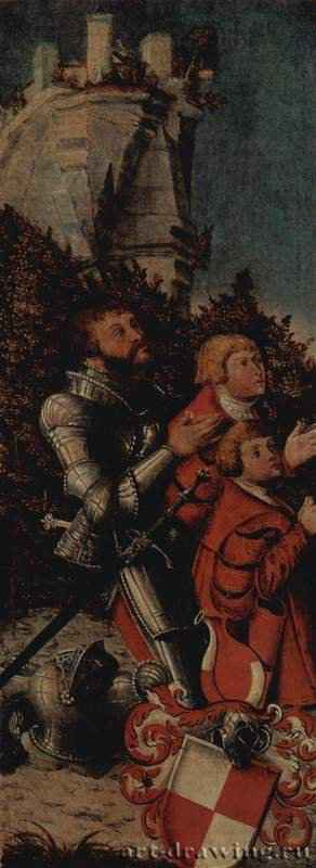 1518-1521 32,5 x 12,5 см Дерево, масло Возрождение Германия Санкт-Петербург. Государственный Эрмитаж Левая створка не сохранившегося алтаря. Донатор с сыновьями (изображение на гербе): вероятно Ганс Шотт фон Шотт и Шоттенштайн Ифаузенский, наместник саксонского курфюрста в Кобурге