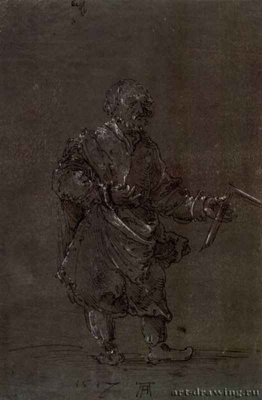 201 x 135 мм. Перо черным тоном, подсветка белым, на грунтованной серо-коричневым тоном бумаге. Берлин. Гравюрный кабинет. Германия.