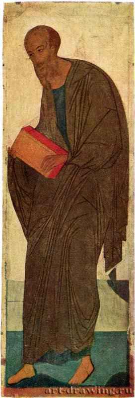 311 x 104 x 4 см. Три липовые доски, две тыльные встречные шпонки. Ковчег, паволока, левкас, яичная темпера. Московская школа. Иконы из иконостаса Успенского собора во Владимире. Государственный Русский Музей, г. Санкт-Петербург.