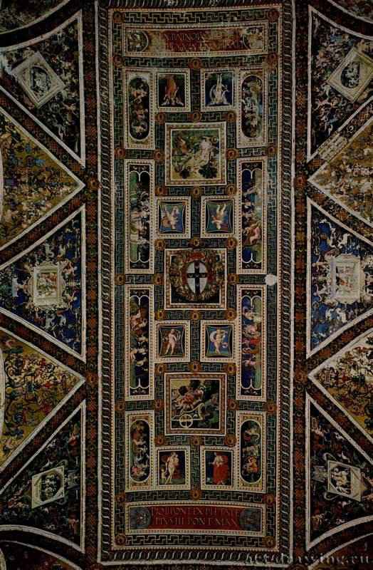 Цикл фресок о жизни и деяниях Энеа Сильвио Пикколомини, папы Пия II, в библиотеке Сиенского собора, фреска в плафоне. Фрагмент. 1502-1507 —