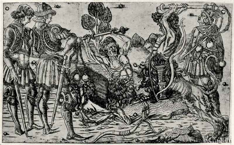 Поллайоло, Антонио дель (школа): 198 х 321 мм. Резцовая гравюра на меди. Лондон. Британский музей, Отдел гравюры и рисунка.