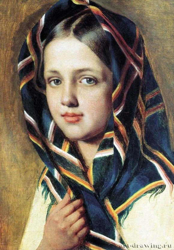 Именно тогда и появляется картина «Девушка в платке». Это результат спора реалиста и поэта, которые уживаются в душе художника. Почему-то это лицо девушки выделяется среди многочисленных портретов художника. Оно полно одухотворенност и, от чего выглядит еще милые. Свою девушку Венецианов избавляет от застывшей неподвижности.