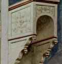 В величественном покое на престоле восседает Спаситель, а по сторонам расположились два ангела, готовые следовать малейшему Его мановению. От центрального изображения взор переходит к событиям Священной истории, которые у Джотто начинаются еще до евангельских дней. Вслед за изображением событий из жизни родителей Богородицы художник изображает Ее рождение и детство вплоть до «Благовещения», которое дало название всей капелле. «Благовещение» изображено на триумфальной арке и является переходом к истории самого Спасителя. Здесь и «Посещение Марией Елизаветы», как первая весть о чудесном Рождении, и «Предательство Иуды» - как первое указание на предстоящую Христу смерть. А внизу по мраморному цоколю параллельно друг другу изображены Добродетели и Пороки.