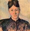 На портрете 1895 года, мадам Сезанн изображена, сидящей в красивом, строгом черном платье. Ее голову украшает светская, элегантная шляпка. Что еще раз подчеркивает ее любовь к красивой жизни.