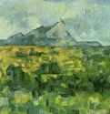 Так вот тоже самое и с Сезанном. Всё дело в том, что Поль Сезанн как раз родился в этих местах, в городе Эссексе, и потому научившись держать кисть в руках, он зарисовывал единственную достопримечател ьность городка – гору Святой Виктории. И делал это всю свою сознательную жизнь. Поэтому среди его работ часто можно увидеть изображение одной и той же местности и одной и той же горы, с разных точек и высот. Но, правда, делал он это практически в разных стилях. Это позволяло ему делать его мастерское владение кистью и карандашами. В этом полотне гора изображена в начале осени, просто много золотисто жёлтого вокруг, а это, скорее всего осень.